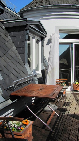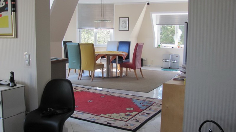 dieser gelangt man mit dem Fahrstuhl direkt in die Wohnung im Dachgeschoss.